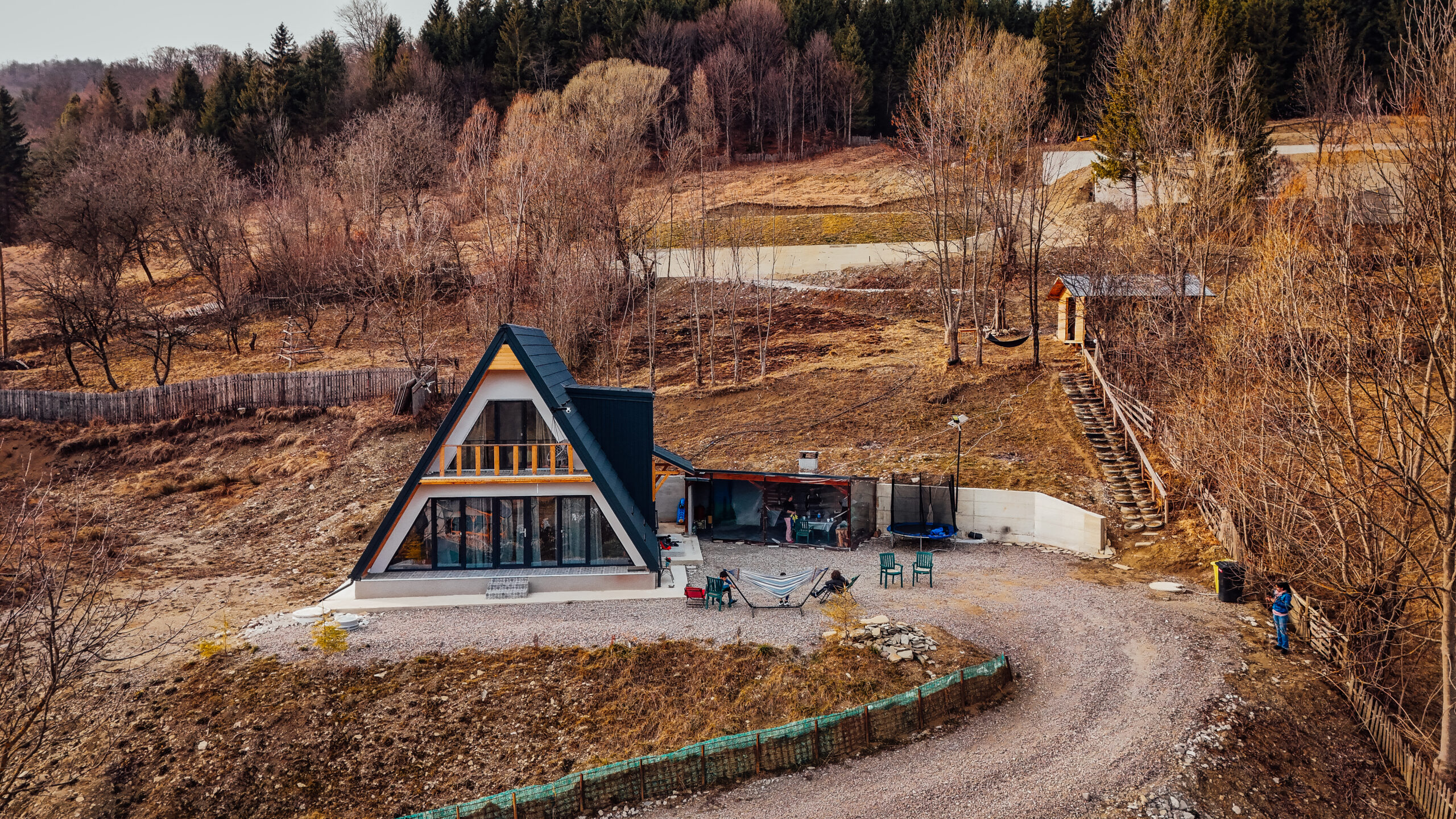 Iarna transformă Sunrise View Chalet într-un refugiu de poveste, cu zăpadă pufoasă și peisaje de vis.